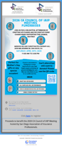 SDAIP will be hosting the 2026 CA Council of IAIP Meeting here in sunny San Diego. We are planning a fundraiser to assist with meeting costs. We will be making fun and decorative keychains and purse chains. Perfect for gifts. All supplies are donated. See flyer for details.
